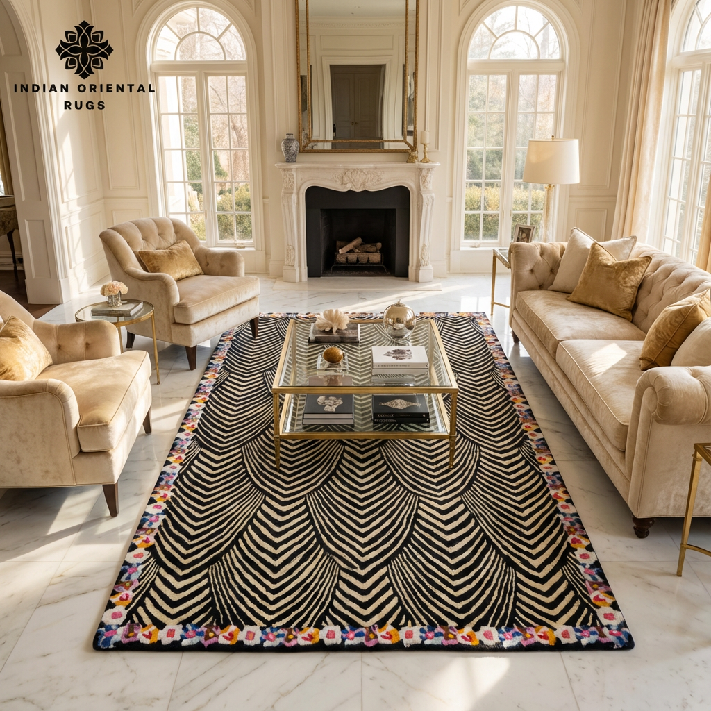 Hand tufted rugs can feature vibrant, intricate, and complex patterns. Their relatively faster production time allows for greater design flexibility.